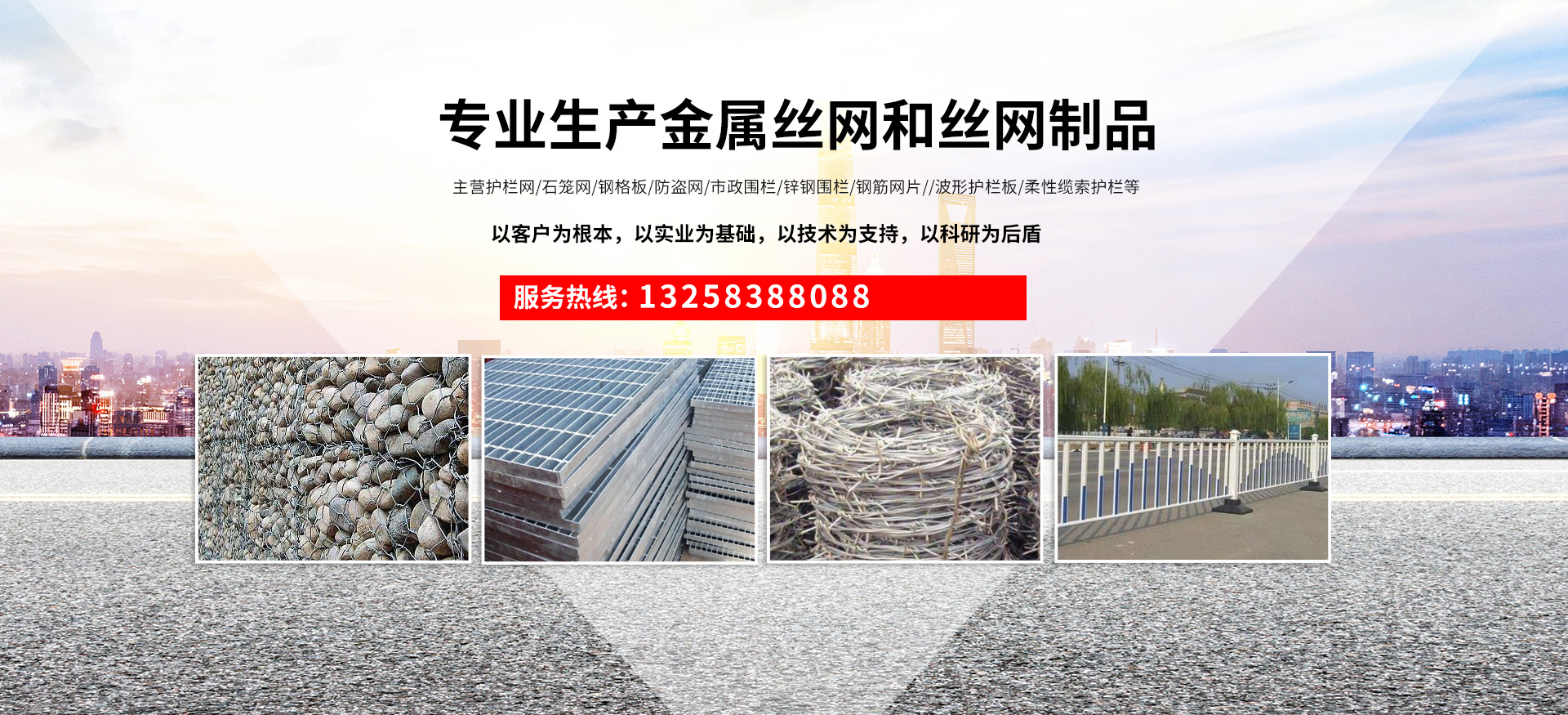 成都宏旭金屬絲網(wǎng)制造有限公司主營護欄網(wǎng)系列、石籠網(wǎng)系列、鋼格板、防盜網(wǎng)、市政圍欄、鋅鋼圍欄、鋼筋網(wǎng)片、聲屏障系列、波形護欄板、柔性纜索護欄、SNS邊坡防護網(wǎng)等其他絲網(wǎng)類產(chǎn)品。特殊規(guī)格可加工定做,也可根據(jù)客戶來圖來樣定做。自創(chuàng)業(yè)以來,公司一直堅持市場為導向,以客戶為根本,以實業(yè)為基礎,以技術(shù)為支持,以科研為后盾,集科研、生產(chǎn)、經(jīng)營為一體,不斷研制開發(fā)新產(chǎn)品,開拓市場,走綜合發(fā)展之路。多年來,公司憑借過硬的質(zhì)量,良好的信譽、優(yōu)質(zhì)的服務、合理的價格,贏得了市場和商家的一致好評。